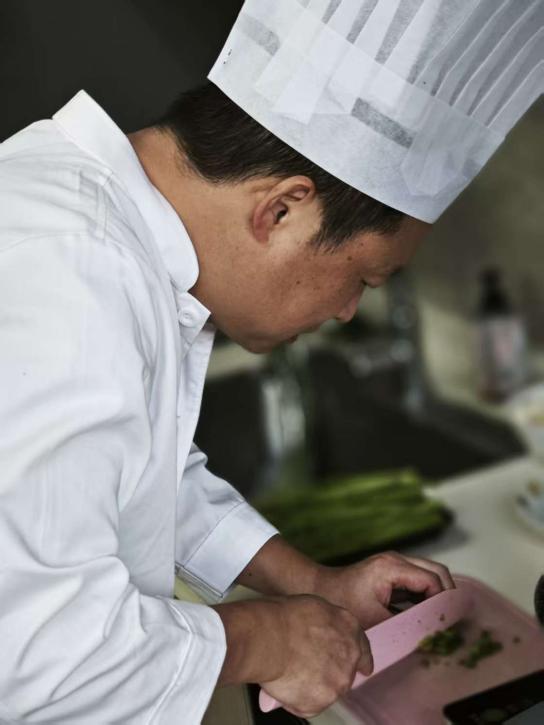 活动伊始,潘大厨首先向大家介绍了富贵石榴球的历史渊源和文化内涵,尤其是这道菜肴在潮州年夜饭中的传统地位以及其所蕴含的美好寓意。随后,潘大厨开始了精彩的现场教学。他着手处理食材,每一步骤都精准而流畅,配合着适时的讲解,从选材、切丁、调味到最终的造型,潘大厨都一丝不苟,确保大家掌握每一个细节的要领。