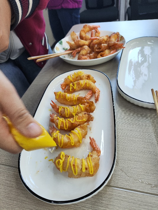 经过近一个小时的忙碌,一盘盘色泽金黄、香气扑鼻的芥末脆皮虾陆续出锅。大家迫不及待地品尝自己的劳动成果,酥脆的外壳搭配着微甜鲜香的酱汁,独特的风味让人回味无穷。“太好吃了!没想到自己也能做出这么精致的创意菜,潘大厨的技巧太实用了”,“平时在家只会清炒虾,这次学会了新做法,年夜饭可以给家人露一手”,大家纷纷为课程点赞,分享着收获的喜悦。