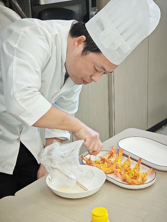 为丰富职工业余文化生活,搭建技能交流与情感联结的平台,近日,学部工会美食制作社团举办了一场别开生面的创意菜教学课程。本次课程特邀资深厨师潘大厨授课,以一道融合了“鲜、香、脆、爽”的芥末脆皮虾为教学核心,吸引众多学部美食爱好者踊跃参与,大家在欢声笑语中解锁烹饪新技能,收获了满满的成就感与幸福感。