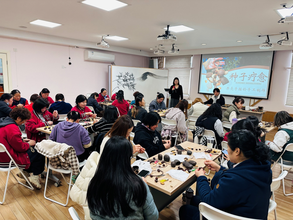 春意盎然的三月,我们迎来了第116个国际“三八”妇女节。为庆祝这一属于全体女性的盛大节日,进一步缓解教师工作压力,提升职业幸福感,华东师大附幼精心策划了一场以“手工创作+声音疗愈”为载体的特别活动,让教师感受果壳风铃DIY的乐趣,学习简单的手工技巧,同时体验手碟的治愈音色,感受声音共创的温暖与力量。