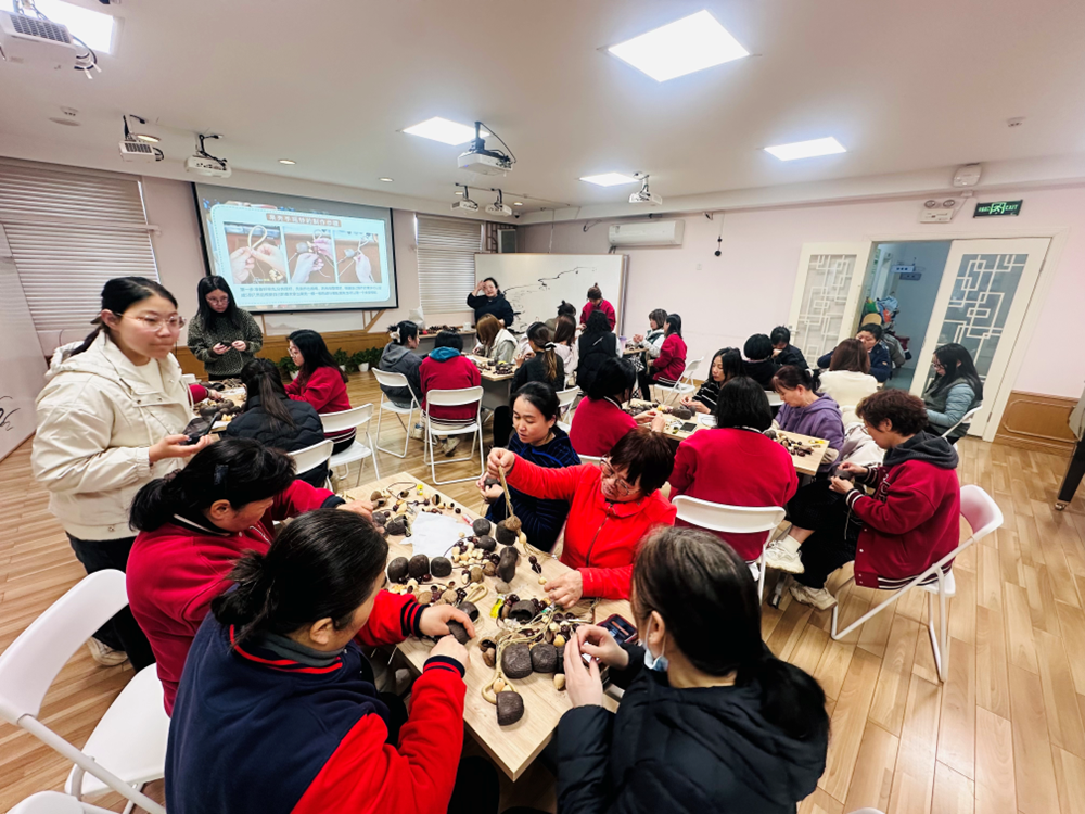 原本朴素的果壳,在老师们灵巧的双手下焕发了新生。大家穿针引线、点缀装饰,将一个个普通的果壳变成了造型各异的风铃。制作过程中,老师们互帮互助,交流心得,欢声笑语此起彼伏。当最后亲手挂上流苏,轻轻摇曳,那清脆悦耳的声响,仿佛是春天最动听的音符,涤荡了平日工作的疲惫。