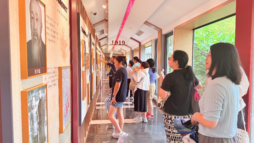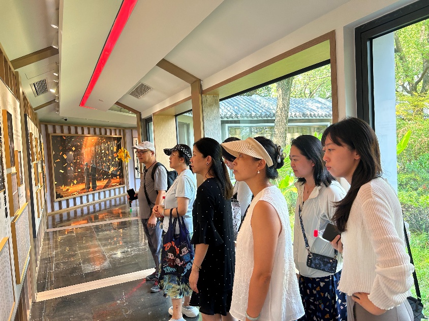 随后,大家移步至陈云文物馆,陈设简朴而整洁,真实还原了陈云同志的生活场景。站在这片孕育了伟人初心与梦想的土地上,老师们仿佛能穿越时空,感受到少年陈云刻苦求学、追求真理的坚定身影,对他“个人名利淡如水,党的事业重如山”的赤诚信仰有了更为直观和深刻的理解。