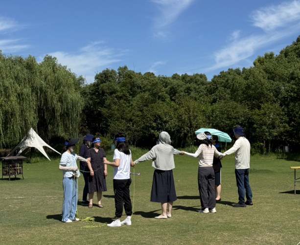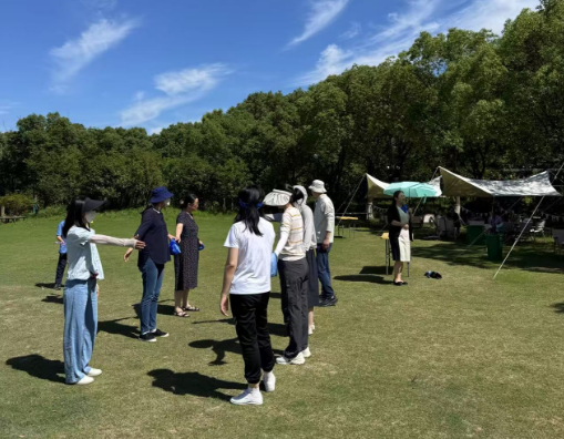 抵达营地后,各小组迅速投入状态,协作搭建团队天幕,建立起活动基地。下午的团建环节是本次活动的核心。教职工们通过参与“蒙眼方阵”、“驿站传书”、“盗梦空间”及“这才是我吗”等精心设计的项目,在实践中深刻体验了有效沟通、精准执行、信任协作与角色定位在团队成功中的关键作用。活动中穿插的贴心茶歇,也为同事们提供了放松交流、分享感悟的宝贵机会。