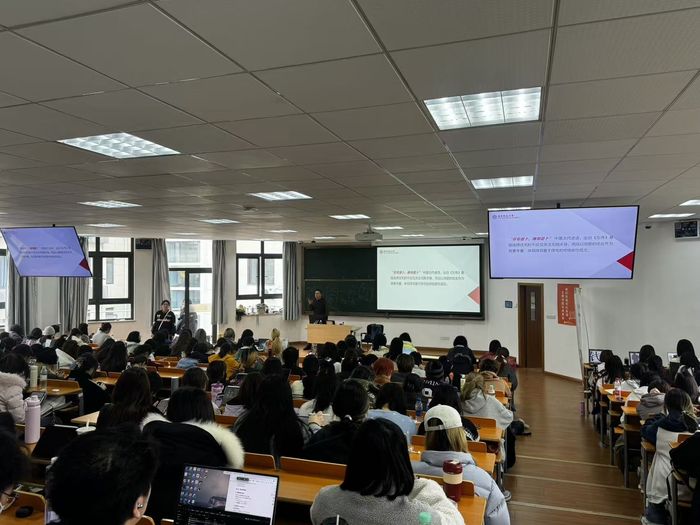 2025年12月10日13:00,华东师范大学设计学院于干训楼阶梯教室举行了一堂主题为《携手周边国家共创美好未来,推动构建新型国际关系》的形势与政策课讲座。本次授课由马克思主义学院何明老师主讲,面向设计学院2024级与2025级全体本科生,现场座无虚席,气氛庄重而热烈。