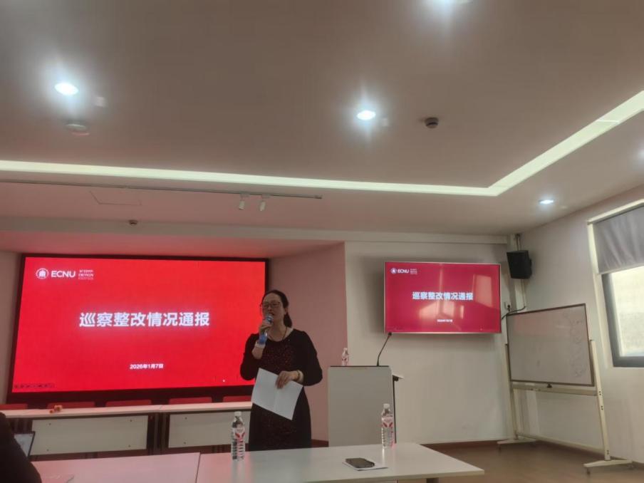 俞世恩书记专题通报巡察整改工作情况,详细说明巡察反馈问题的整改举措、当前完成进度,并介绍了长效机制建设推进情况,彰显了学院党委从严从实抓好整改、持续提升治理效能的坚定决心。