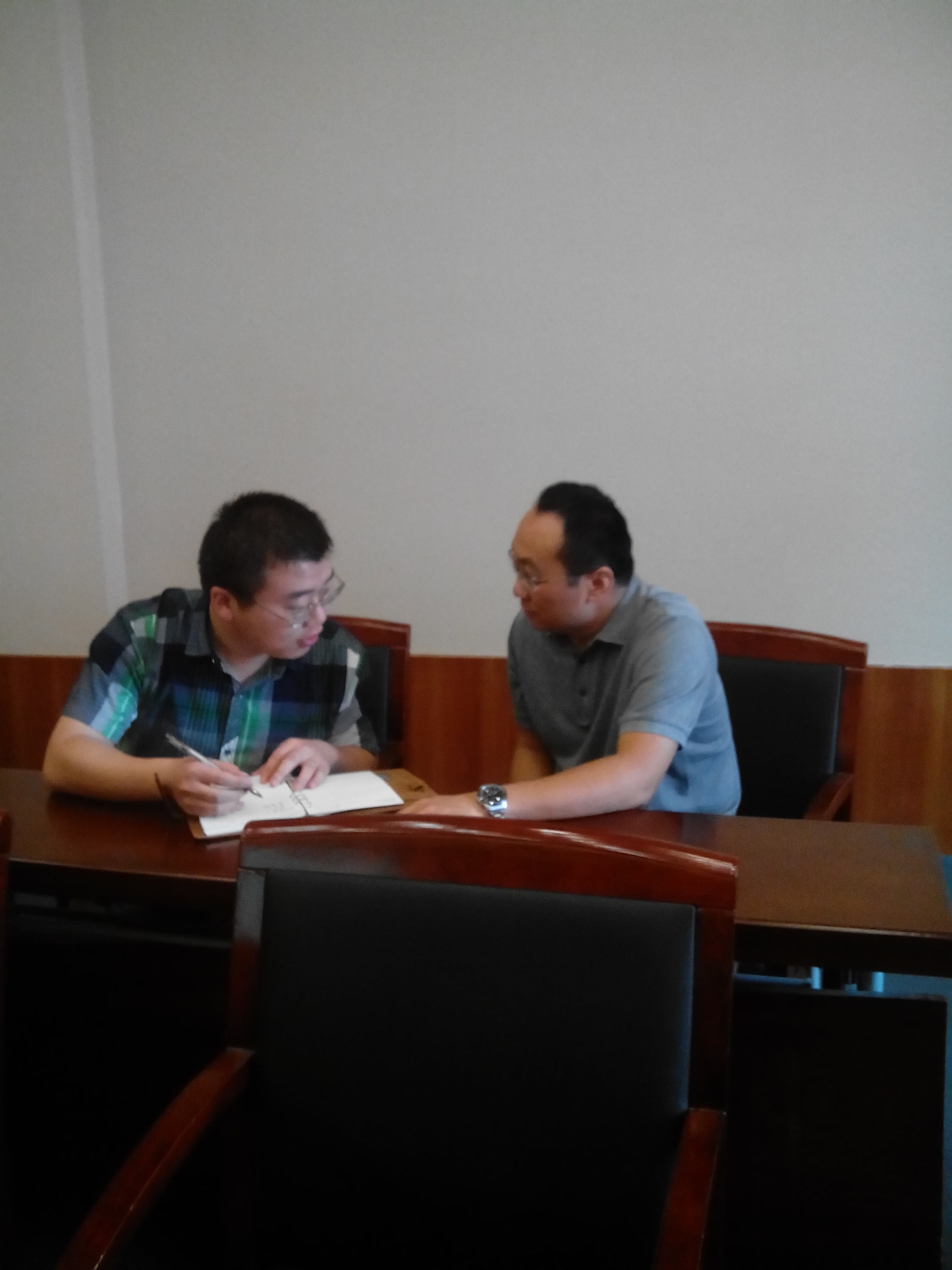 发展与教育支部书记杨安博与研二支部书记丁培书讨论活动细节