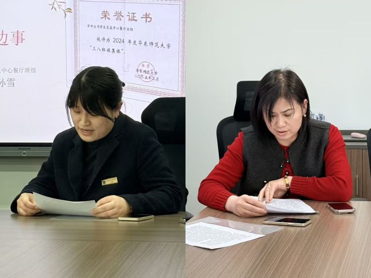 “榜样面对面”环节,曾荣获2024年度华东师范大学“三八红旗集体”的华申公司学术交流中心餐厅班组成员王志梅、孙雪两位女职工代表,分别从班组管理和一线窗口视角,分享团队践行“服务育人”的日常。朴实的话语、鲜活的案例,让现场参会人员深受触动,也让“三尺讲台育桃李,一方餐桌暖人心”的理念深入人心,校企职工以服务育人,就藏在每一次细致的接待、每一个贴心的举动、每一回真诚的付出中。