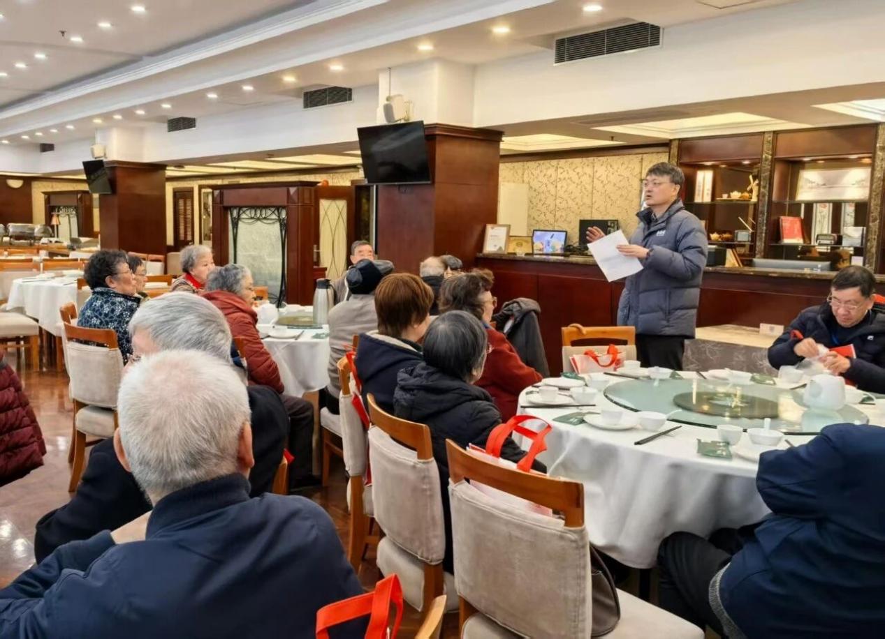 活动在普陀校区逸夫楼一楼餐厅举行。现场工作人员在签到处为老教师们送上中文系定制布袋及全年系情简讯。活动伊始,中文系党委书记徐默凡代表全系师生向退休教师致以诚挚的节日问候,感谢大家长期以来对中文系发展的关心与支持,并介绍了本年度中文系在教学、科研和学科建设等方面的新进展。