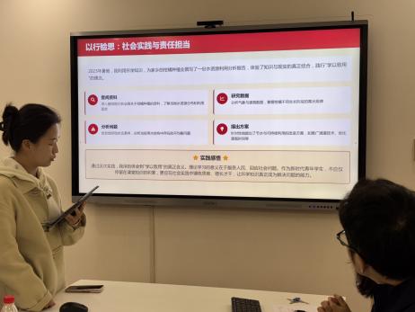 23级硕士生邱晨静将理论学习与参观孙中山先生纪念馆后的深刻感悟进行结合分享,并在家乡自然保护区管护局深入村庄进行走访宣传,将保护理念传递给每一位村民。24级硕士生罗雨婧分享自己在培训过程中对党章进行系统学习的思考,并在忻州市团市委实习期间对忻州古城的发展路径进行研究,为古城非遗的保护建设建言献策。