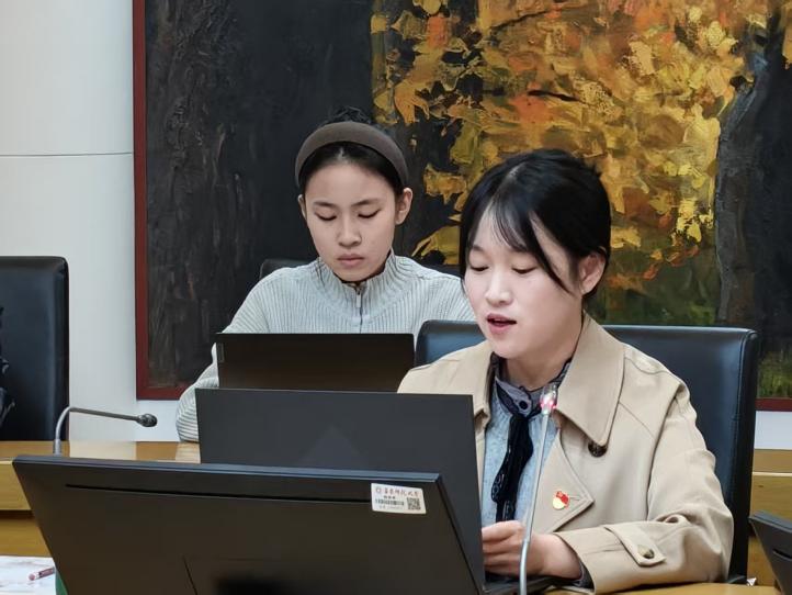 在主题分享环节,支部党员、冯契学术成就陈列室义务讲解团志愿者朱乐怡与常佳慧分别从各自维度为大家绘就了冯契先生的精神画像。朱乐怡以“时代风云中真切的爱国者——冯契”为主题,深情追溯先生青年时代的革命足迹。从“一二·九”运动的抗争到清华园的奋起,从延安鲁艺的战火洗礼到西南联大的地下革命,冯契先生用实际行动谱写了一曲“以身许国”的壮丽诗篇。无论是在人生道路的抉择关口,还是在民族存亡的危急时刻,他始终将个人理想与民族复兴紧密相连,以毕生实践诠释了“爱国是立德之源、立功之本”的深刻内涵,为当代青年树立了永恒的精神坐标。常佳慧则以“两化育新人,杏坛扬师德”为主题,以“化理论为方法,化理论为德性”为切入点,从冯契先生的为人为学为师等方面生动诠释了习近平总书记提出的“教育家精神”。从书斋里的深邃哲思到书房中的恳切长谈,冯契先生既是“真学、真懂、真信、真用”马克思主义的哲学家,又是“望之俨然”“即之也温”“随才成就”的良师,是“经师”与“人师”合一的典范。