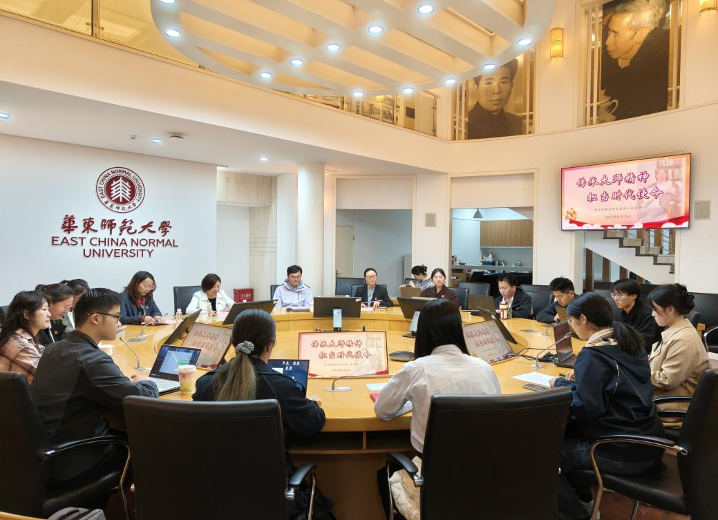 2025年11月12日下午,华东师范大学哲学系硕士研究生第一党支部“传承大师精神,担当时代使命——纪念冯契先生诞辰110周年”主题党日活动在冯契学术成就陈列室顺利开展。师生共聚一堂,从冯契先生的生命轨迹中汲取爱国主义与教育家精神的深厚滋养。校党委常委、统战部部长、学校办公室主任张惠虹,哲学系党委书记王柏俊,哲学系党委副书记贾吉丰,哲学系专职组织员王晓红现场观摩本次活动。活动由硕一支部书记孔雪茹主持。