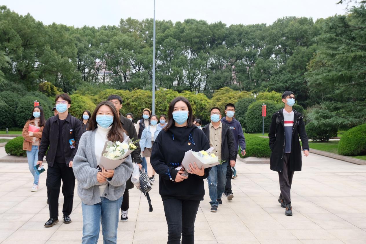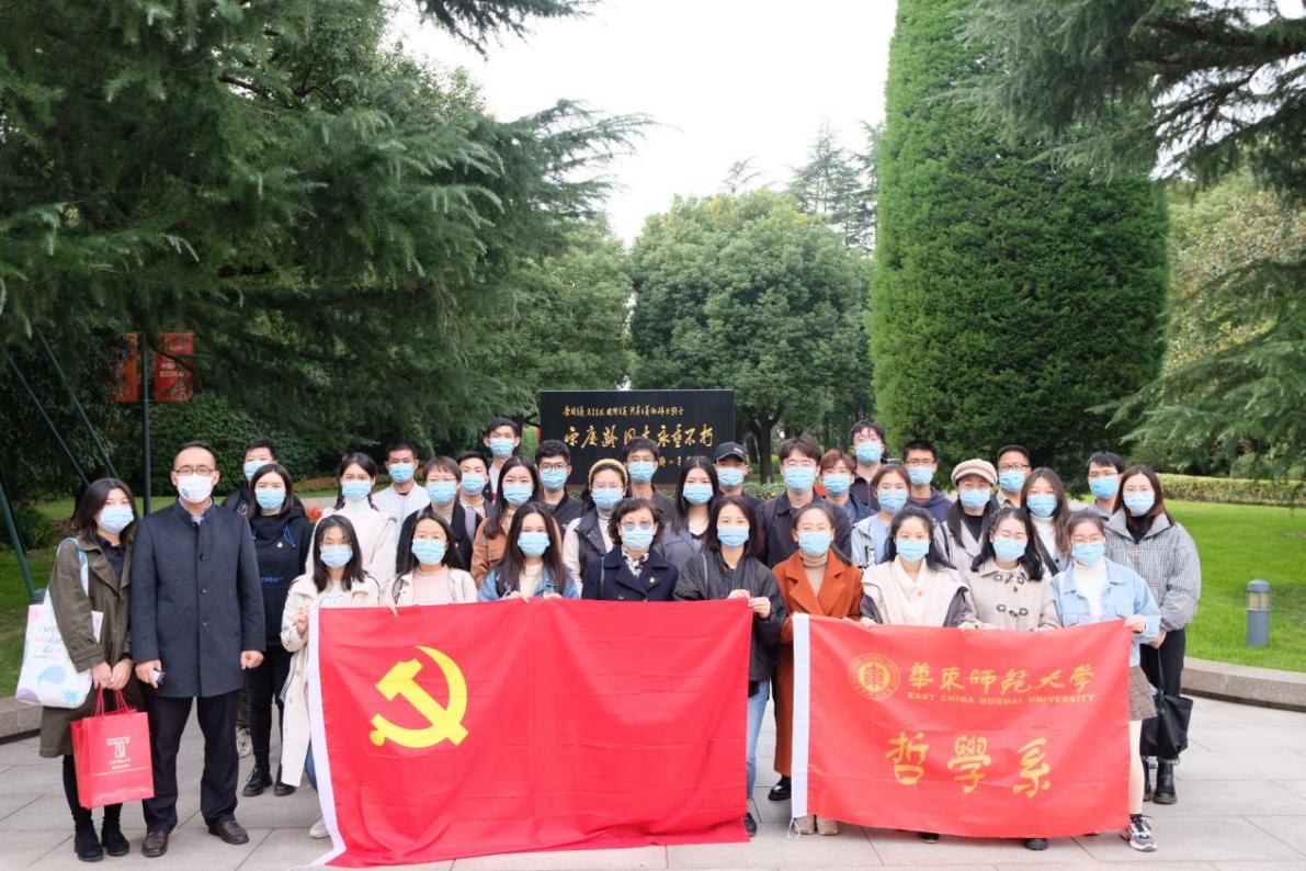 为学习贯彻习近平总书记“七一”重要讲话精神,赓续红色血脉、弘扬伟大建党精神,华东师范大学哲学系硕士研究生第一党支部于2021年11月17日下午举办“追寻红色足迹,缅怀革命先辈”主题党日活动。支部党员同志们和冯契学术成就陈列室义务讲解团成员共同前往宋庆龄陵园进行瞻仰纪念,哲学系特邀党建组织员、关工委副主任来建础、系党委副书记武娟、系专职组织员王晓红老师,21届毕业生系友付尚春等一同前往。